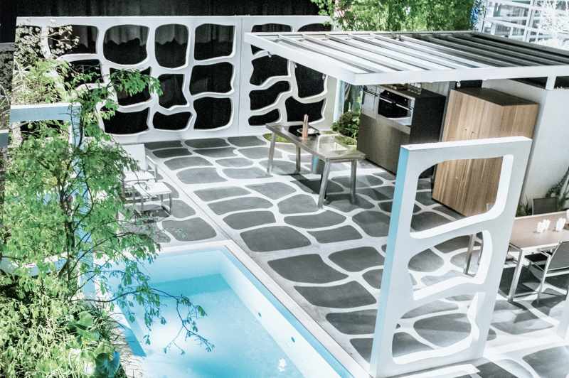 — Leidenschaft, Persönlichkeit, Symbiose — Sieben Partner ein Projekt: Prämierter Gemeinschaftsstand "Raumgeflüster" — Gold Award in der Kategorie Showgarten — Filigranste Elemente — Mix von Farben und Formen — Faserbewehrte Wandelemente — Schalungsmatrizen mit 3D-Technik